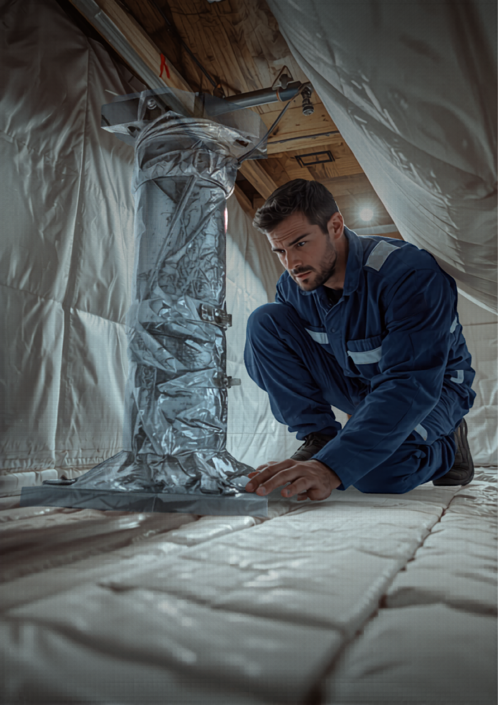 Once the space is clean and repaired, we install a complete encapsulation system — drainage, 20-mil vapor